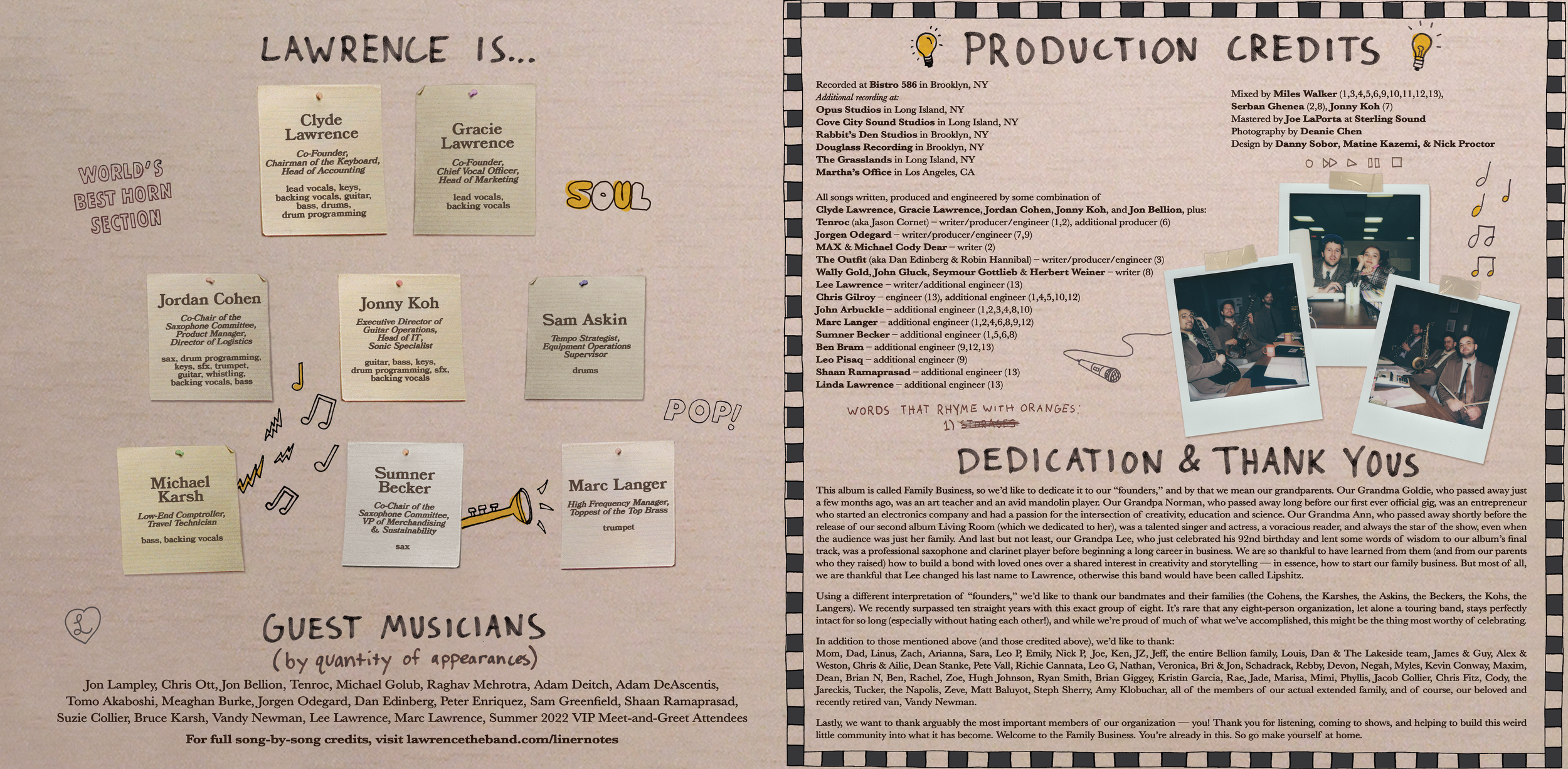 For full song-by-song credits, visit lawrencetheband.com/linernotes